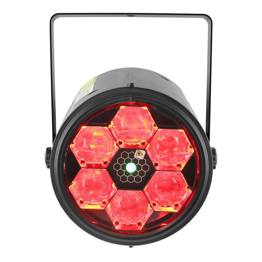 - DOUBLE EFFET DYNAMIQUE : Combine un effet LED rotatif en nid d’abeille RGBW et un laser vert multipoints pour un rendu spectaculaire en mouvement.