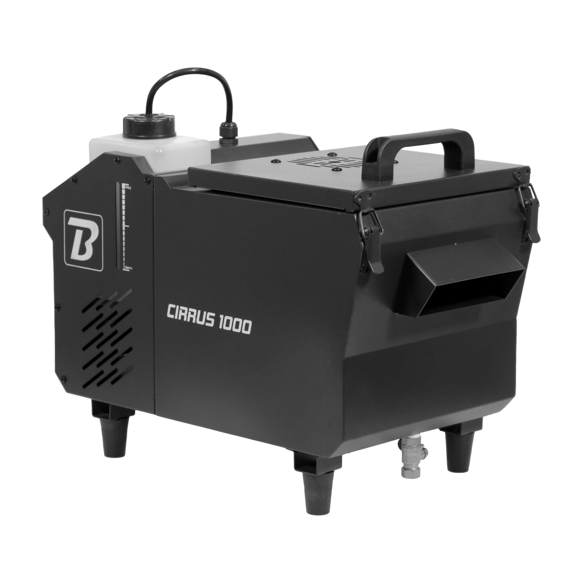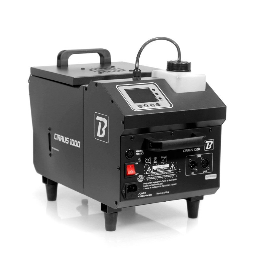UNE FUMÉE AU SOL SANS GLACE, POUR UN EFFET SCÉNIQUE SPECTACULAIRE.La BoomTone DJ Cirrus 1000 génère une fumée lourde dense et uniforme, qui reste au sol grâce à sa technologie à base d’eau, sans glace. Contrôle DMX ou télécommande, chauffe rapide, débit continu et écran LCD : elle allie puissance et simplicité. Créez une atmosphère magique sans contrainte.