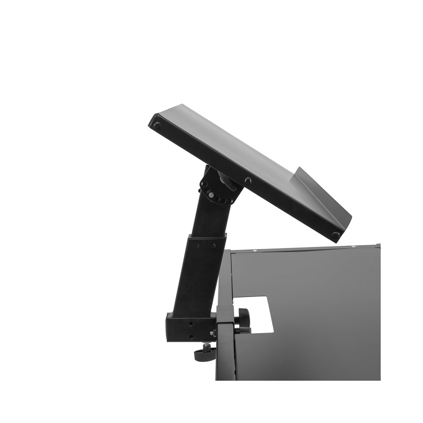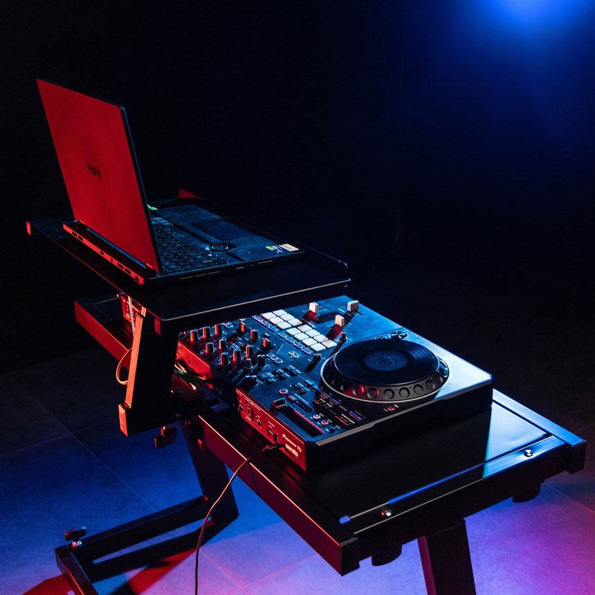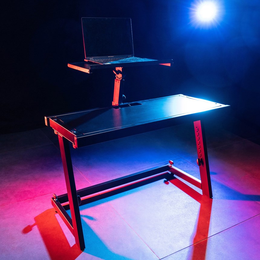 - SUPPORT PC INTÉGRÉ : Une tablette supérieure réglable accueille votre ordinateur portable pour un setup DJ ergonomique et compact.