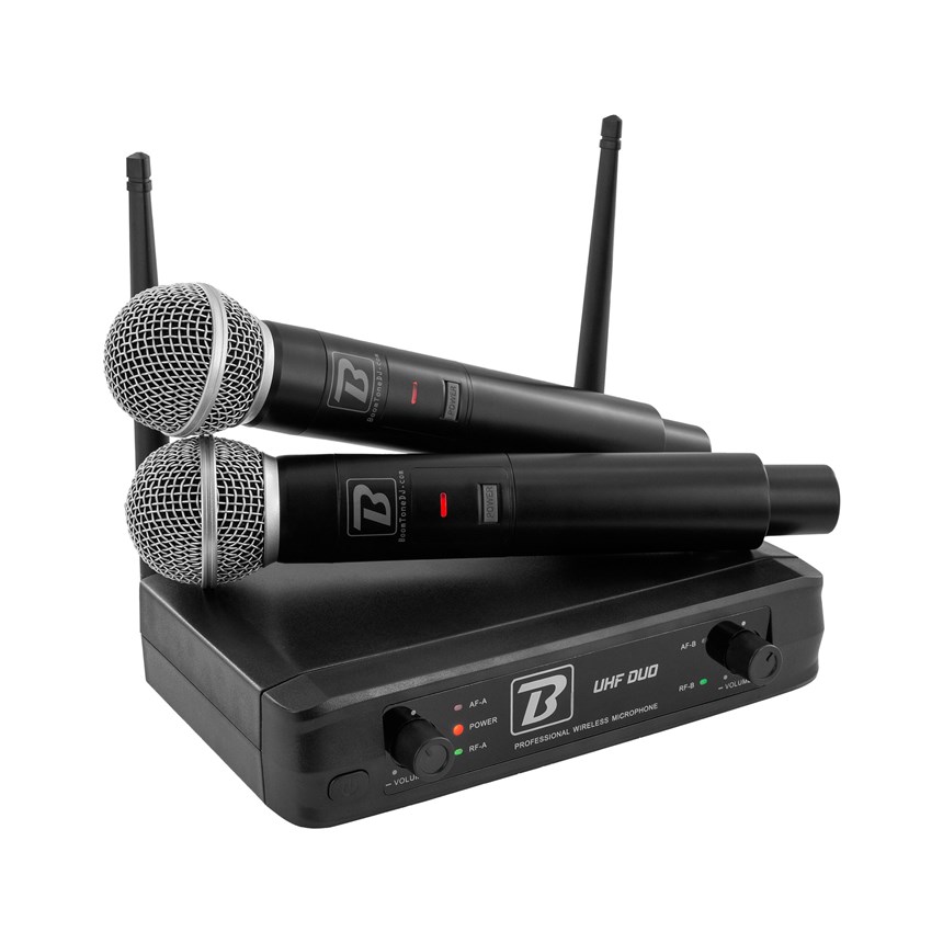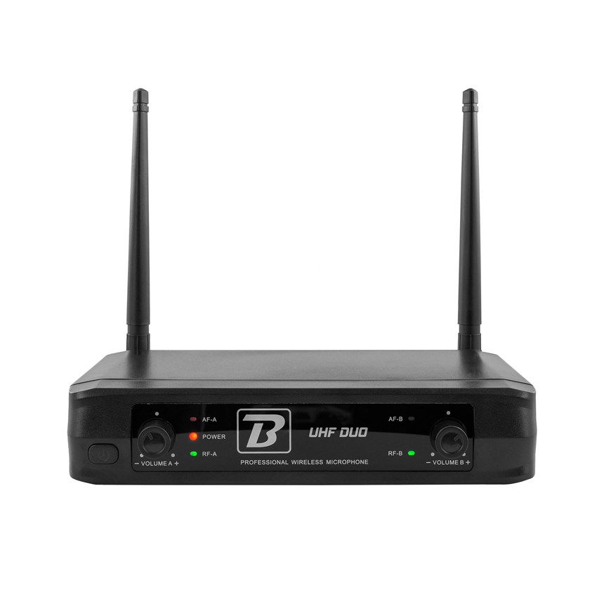 PUISSANCE ET LIBERTÉ POUR VOS PRESTATIONS SCÈNIQUES ! Profitez d’un son clair et stable avec le système sans fil BoomTone DJ UHF Duo, composé d’un récepteur double et de deux micros main UHF.Avec une portée jusqu’à 80 mètres et un rapport signal/bruit supérieur à 96 dB, il garantit une transmission fiable et sans interférences. Idéal pour chant, animation ou discours, il offre une autonomie de 5 heures. Passez au sans fil performant dès aujourd’hui !