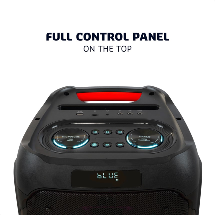- EFFETS LUMINEUX LED : LED multicolores autour des boomers, effets latéraux et stroboscopes pour une ambiance visuelle spectaculaire. Plusieurs effets pré-enregistrés.