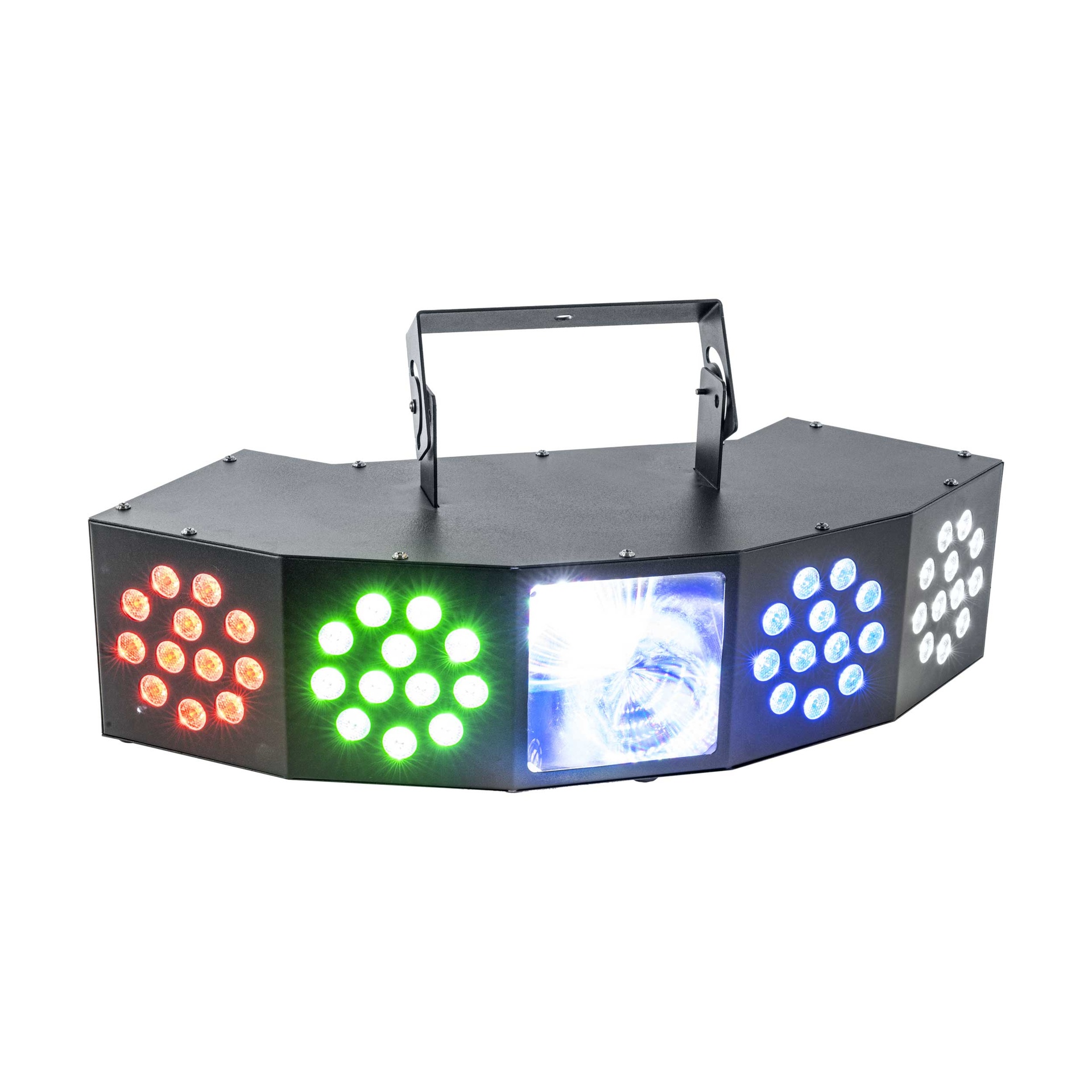 - CONTRÔLE COMPLET : Fonctionne en mode automatique, audio, maître/esclave ou via 6 canaux DMX pour s’intégrer facilement à tout setup lumineux.