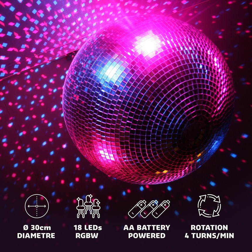 - BOULE À FACETTES 30CM: Miroirs de qualité pour une réflexion optimale des faisceaux lumineux et un effet disco classique. Chaine incluse de 20cm.