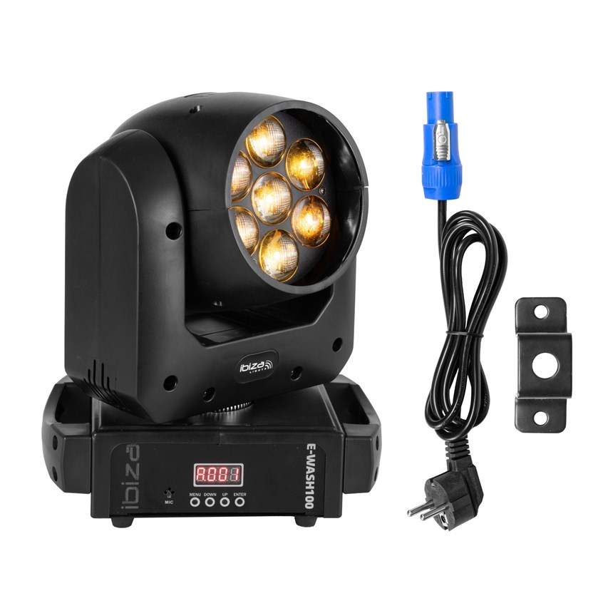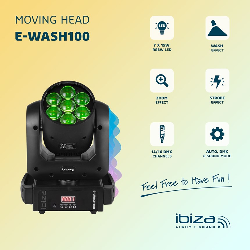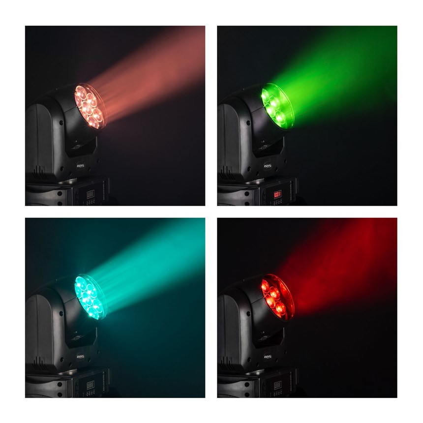LYRE WASH PUISSANTE AVEC ZOOM MOTORISÉ POUR EFFETS INTENSES - Profitez d'une lyre dynamique équipée de 7 LED RVBB 4-en-1 offrant un faisceau ajustable de 6° à 36° et un contrôle total via DMX.Parfaite pour des ambiances immersives et colorées !