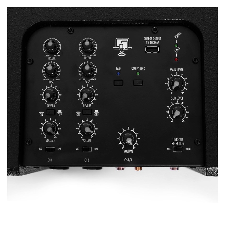 - MIXEUR INTÉGRÉ : 4 canaux avec entrées Micro, Instrument, Jack, RCA et mini-Jack, plus réglages indépendants de volume, Reverb, Treble et basses.