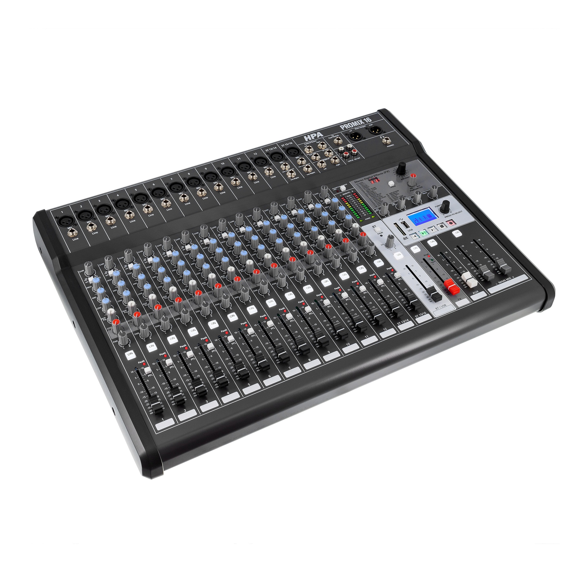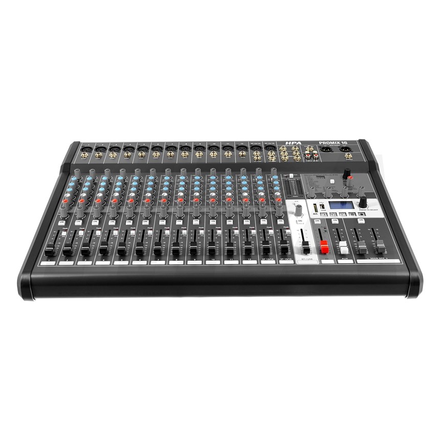 MIXAGE PUISSANT ET FLEXIBLE POUR LES PROS – La HPA Promix 16 offre 16 canaux avec processeur multi-effets, 14 faders linéaires et connectiques variées pour une maîtrise sonore totale.Fidélité audio 20 Hz–20 kHz, alimentation fantôme +48 V et enregistrement USB 24 bits/48 kHz pour un son clair et précis. Bluetooth, USB et carte SD intégrés. Passez à la performance supérieure dès maintenant !