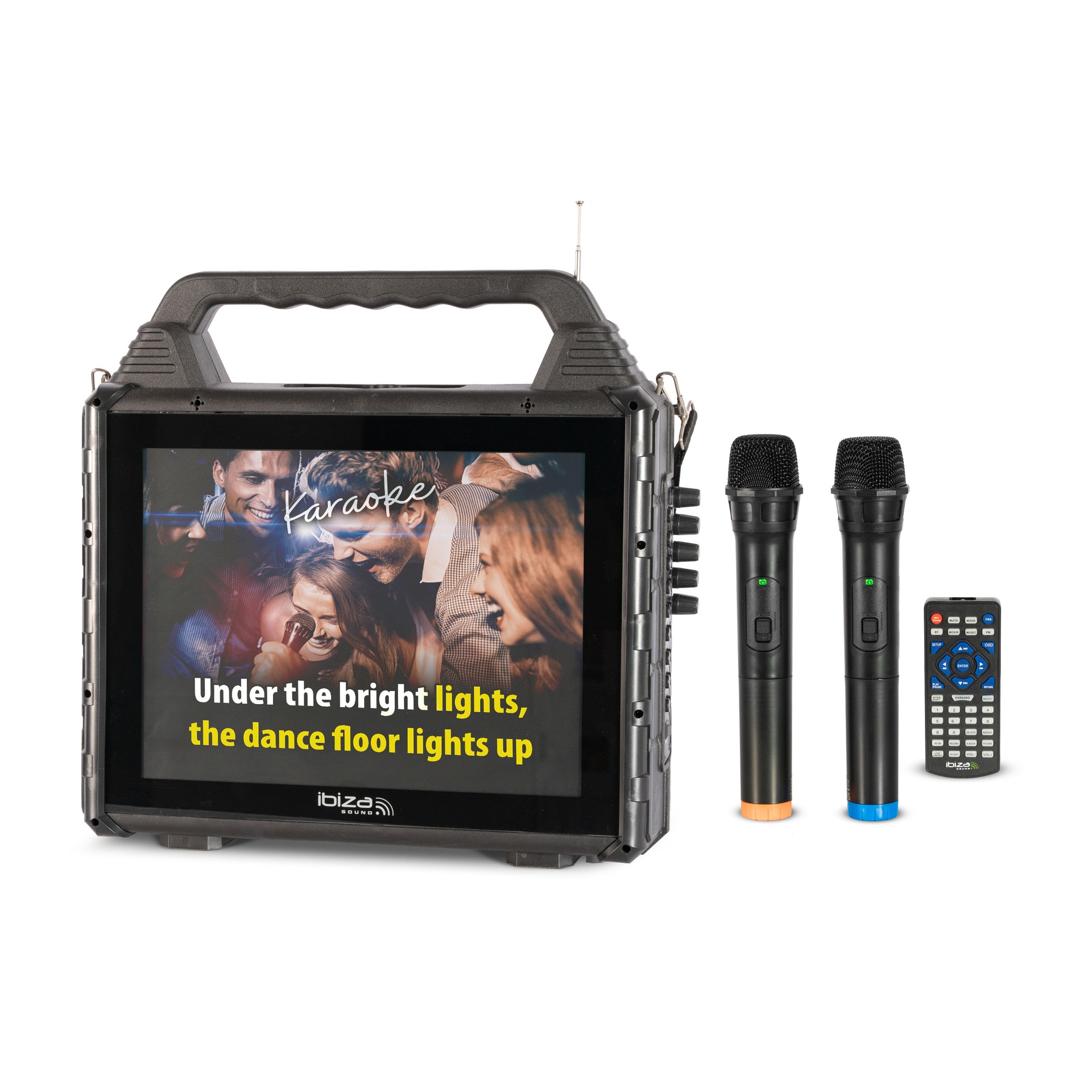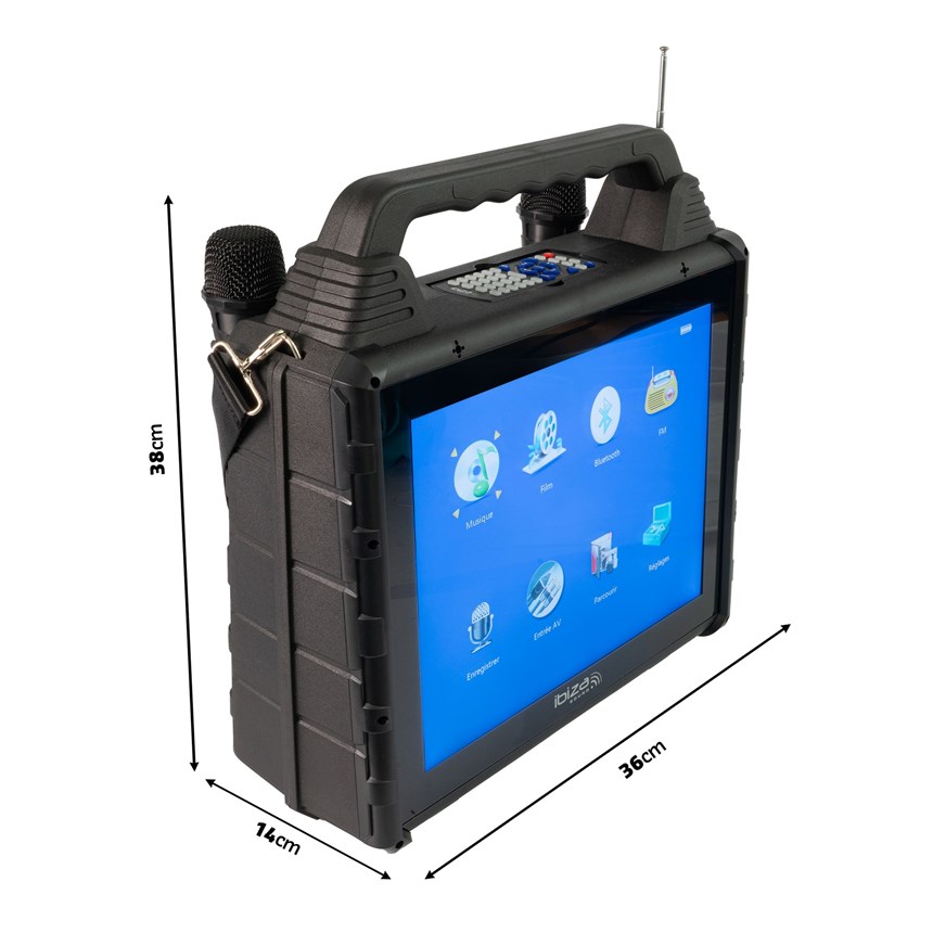 LE KARAOKÉ TOUT-EN-UN AVEC ÉCRAN INTÉGRÉ POUR DES SOIRÉES CLÉ EN MAIN.Le KARAVISION combine enceinte 150W, écran 14'', BT et 2 micros sans fil pour des performances immersives partout.