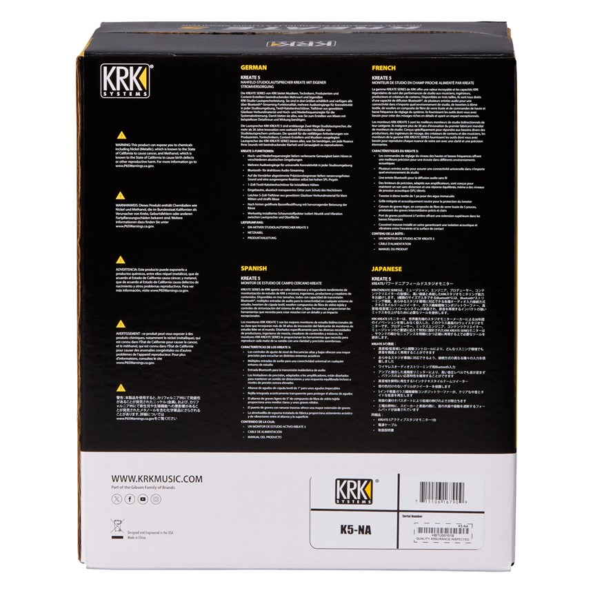 EXPLOREZ CHAQUE DÉTAIL DE VOTRE MIX ! Les KRK Kreate 5 combinent puissance (60 W), précision et compacité pour votre home studio.Woofer 5" en fibre de verre et tweeter 1" en textile révèlent basses profondes et aigus clairs jusqu’à 40 kHz. Bluetooth, XLR, Jack et RCA offrent une flexibilité totale. Travaillez vos mix avec confiance et précision dès maintenant !