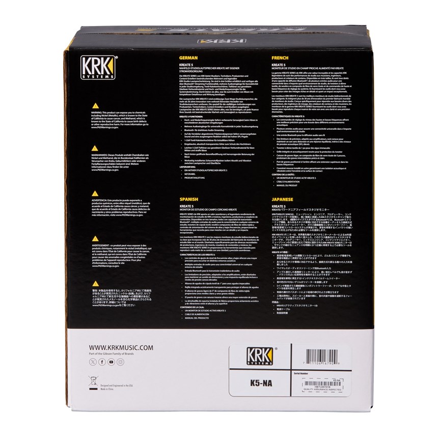 RESSENTEZ CHAQUE BASSE, CAPTEZ CHAQUE DÉTAIL.La KRK Kreate 8 offre un woofer 8" en fibre de verre (jusqu’à 40 Hz) et un tweeter textile 1" (jusqu’à 40 kHz) pour une précision totale du grave aux aigus. 100 W bi-amplifiés (210 W en crête) assurent puissance et clarté. Connectique complète (XLR, Jack, RCA, Bluetooth 5.3) + EQ ajustable : adaptez-la à votre studio et mixez avec confiance.