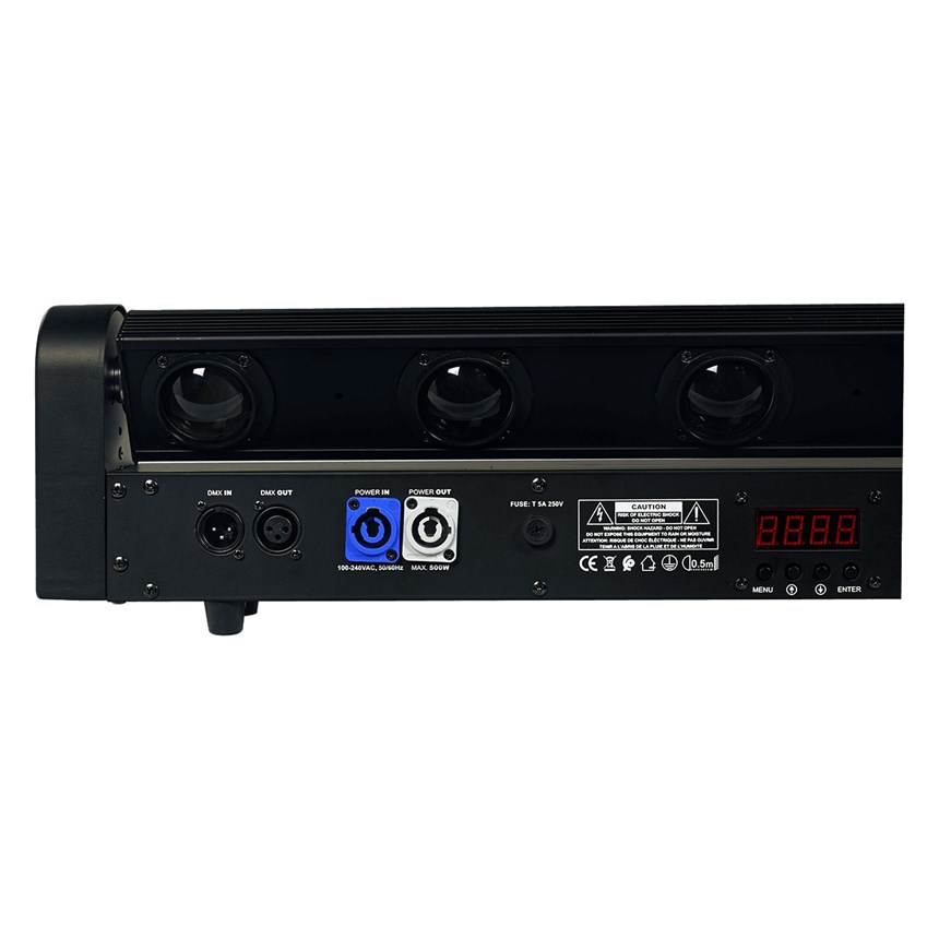 Avec ses 8 LED RGBW de 10W à faisceau ultra-serré de 2,5°, la barre motorisée MB810 projette des effets lumineux dynamiques à 265°.Parfaite pour scènes, clubs ou TV, elle propose des modes Auto, Musical ou DMX (jusqu’à 38 canaux) pour une créativité totale et une synchronisation précise.