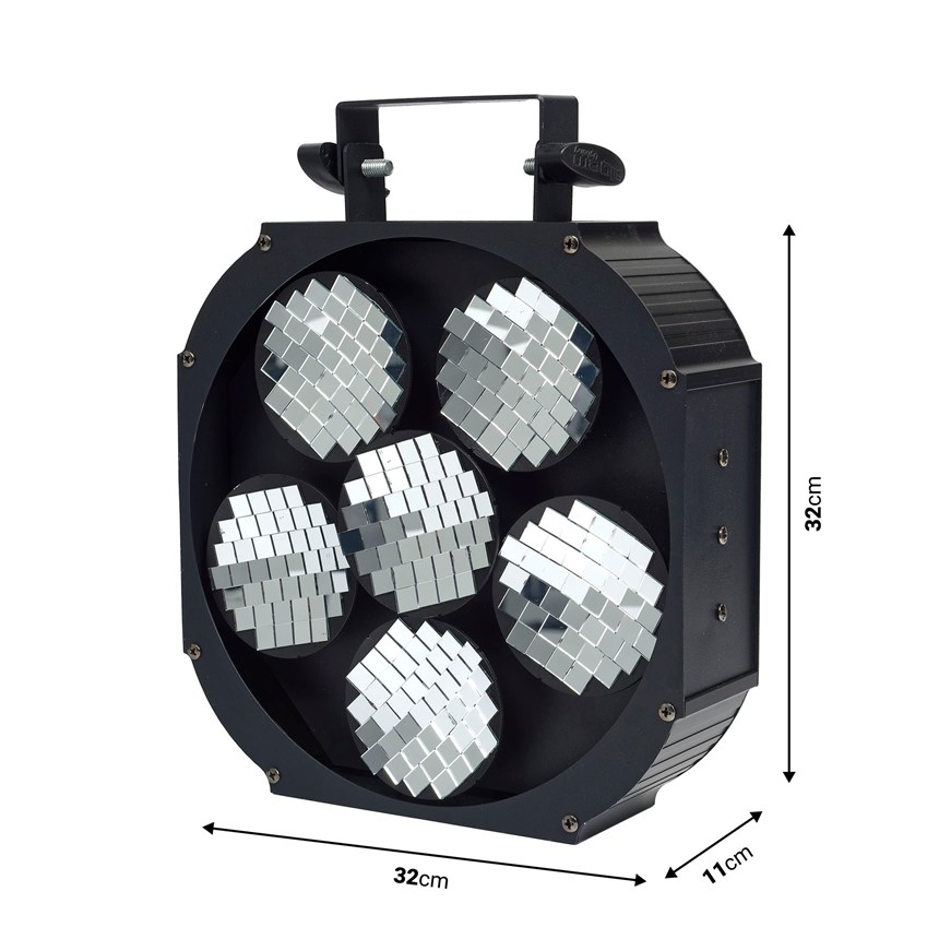 EFFET BOULE À FACETTES RÉINVENTÉ POUR DES SHOWS SPECTACULAIRES.Créez une ambiance disco électrisante grâce à 6 disques motorisés recouverts de miroirs. Activation automatique, détection musicale ou contrôle DMX : branchez, éclairez, dansez. Idéal pour clubs, soirées et DJs. Faites vibrer la piste en un instant.
