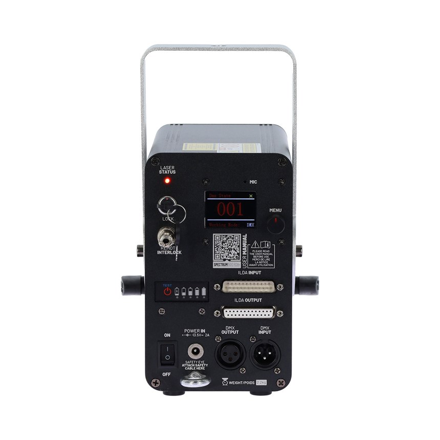 UNE CRÉATION LASER LIBRE, PUISSANTE ET NOMADE : Projetez logos, textes et effets dynamiques depuis votre smartphone grâce à l’application dédiée.Avec 1470 mW de puissance RGB, contrôle DMX/ILDA et 4 h d’autonomie sur batterie, le Spectrum 1500 RGB+ s’adapte à tous vos évènements.