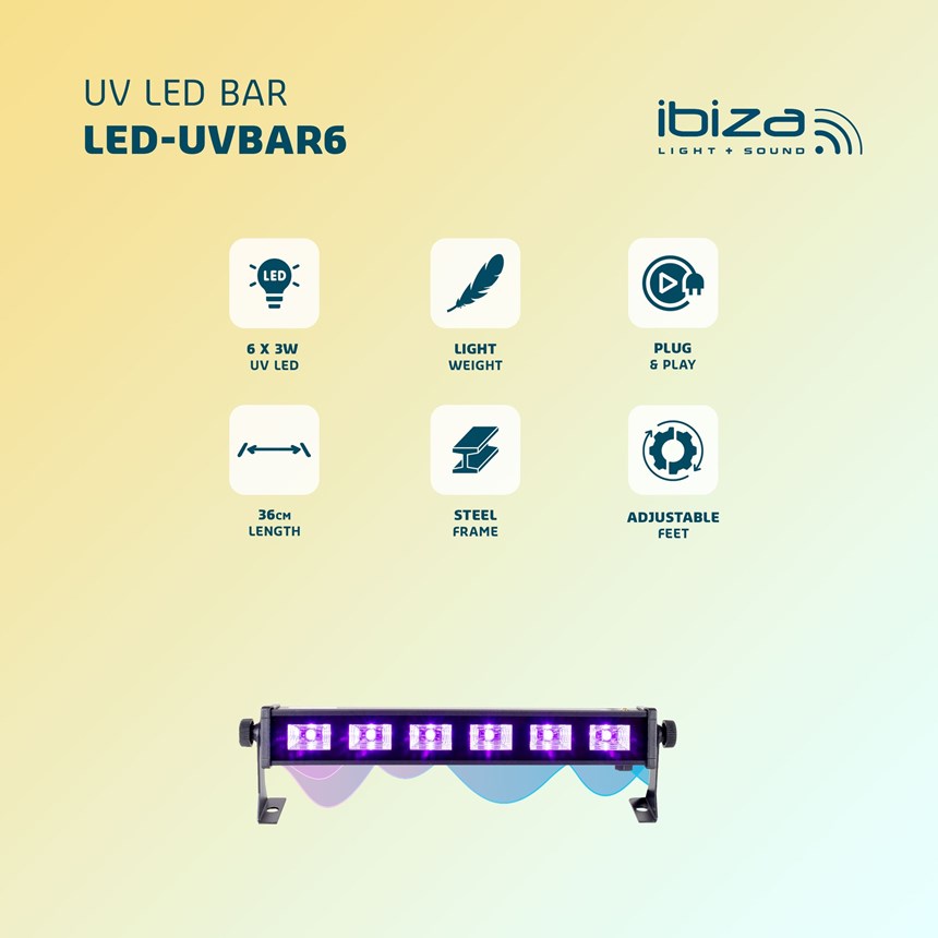 - PUISSANCE UV COMPACTE : Équipée de 6 LED UV de 3W, cette barre délivre un effet lumière noire saisissant dans un format mini, idéal pour les petits espaces ou installations mobiles.