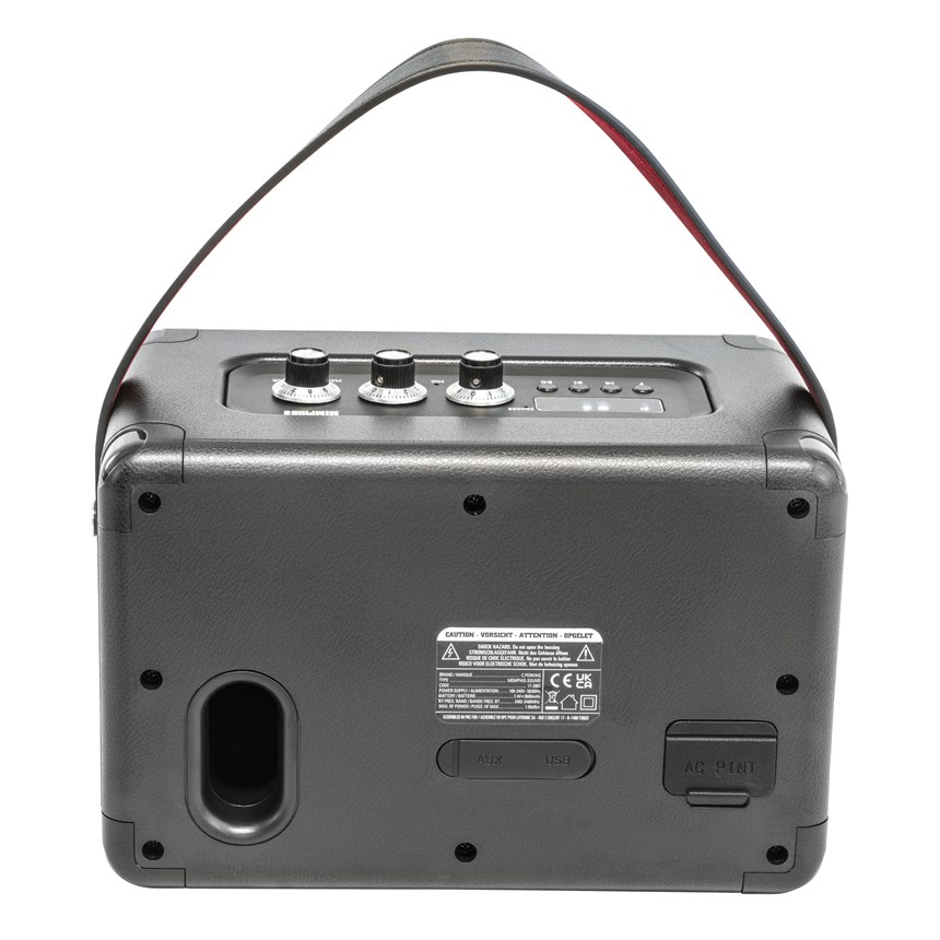- COMMANDES EN LAITON : Inspirée de l’histoire de la marque, la finition en laiton des boutons confère un style unique et élégant à cette enceinte compacte. Réglage du volume général, des graves et des aigus.