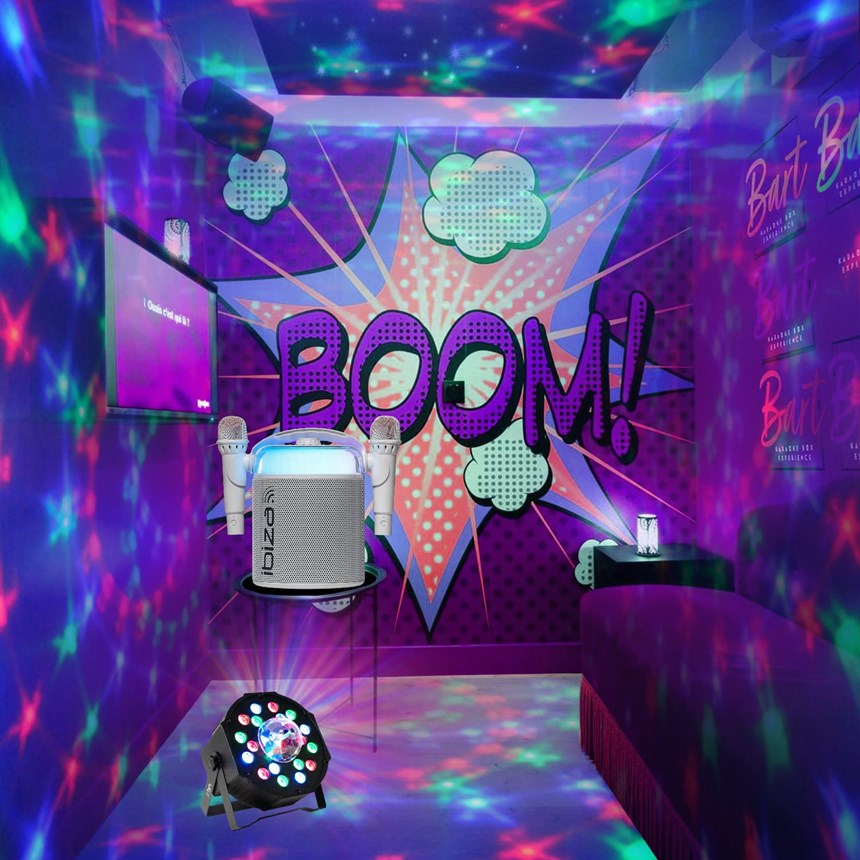 Inclus : 1 jeu de lumière compact PARTY-PAR-ASTRO, pour créer une ambiance festive autour des chanteurs !