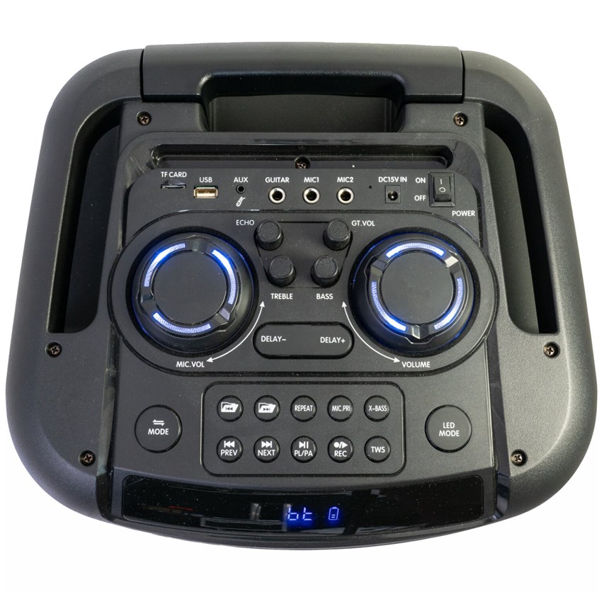 Sa batterie rechargeable vous offre une liberté totale, tandis que son trolley et ses roulettes assurent un transport facile. Connectez votre musique via Bluetooth, USB, microSD ou AUX, branchez une guitare ou un micro et ajoutez des effets Echo et Delay pour un son sur mesure.