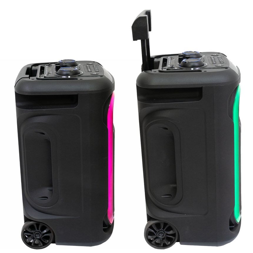 - Enceinte Bluetooth autonome avec trolley et roulettes pour des soirées festives sans contrainte ! Fonction Bluetooth, USB, Micro SD et AUX !