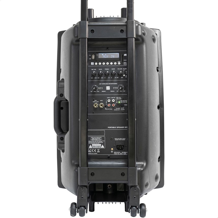 - MULTI-CONNECTIVITÉ : BT et entrées USB, SD, AUX, LIGNE (via RCA IN), 1 MIC 6,35mm et 1 MIC/GUIT 6,35mm pour connecter toutes vos sources audio, y compris smartphones, lecteurs MP3 et micros. Sortie RCA. Fonction TWS pour connecter sans fil 2 PORT15UHF-BT ensemble et doubler la puissance sonore.