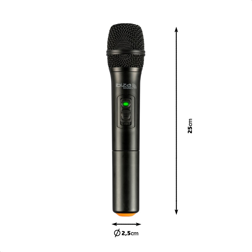 MICRO MAIN COMPATIBLE AVEC PORT-VHF - 203.5MHz. Compatible avec tous les systèmes acceptant cette fréquence dont nos enceintes PORT12VHF-BT et PORT15VHF-BT, ce micro main sans fil vous offre la liberté de mouvement idéale pour toutes vos prestations.