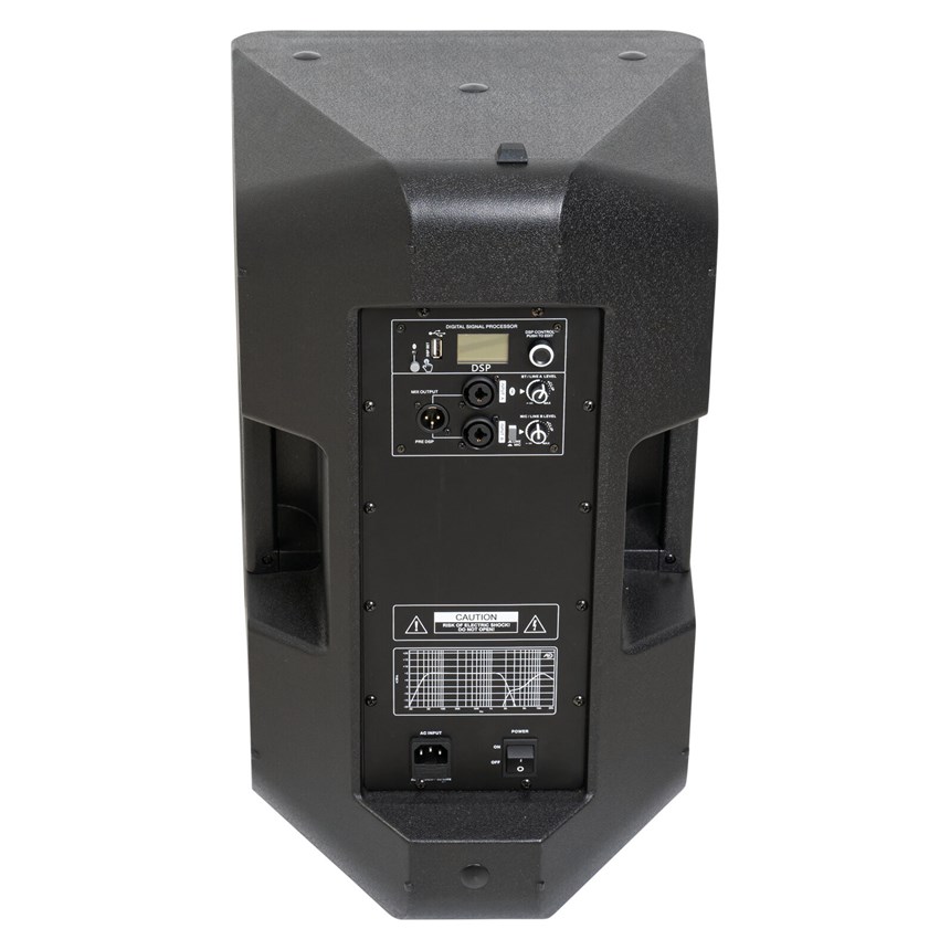 PUISSANCE ET POLYVALENCE MAXIMALES.L’enceinte active PRO15DSP 15"/38 cm délivre 1000W via son ampli Class D et DSP avec modes Classic, Pop, Jazz, Normal et Custom programmable USB. Bluetooth intégré, 2 entrées Combo LINE/MIC, sortie XLR et double embase pour montage droit ou incliné. SPL max. 126 dB, idéale pour concerts, DJ et retours de scène.