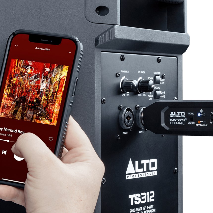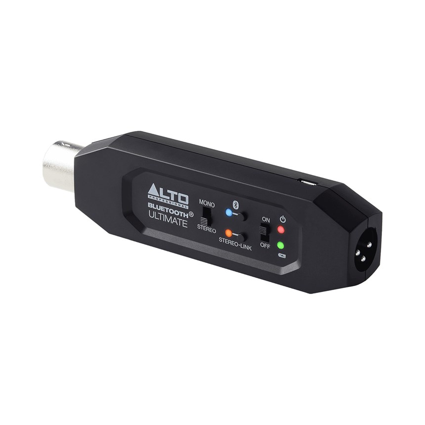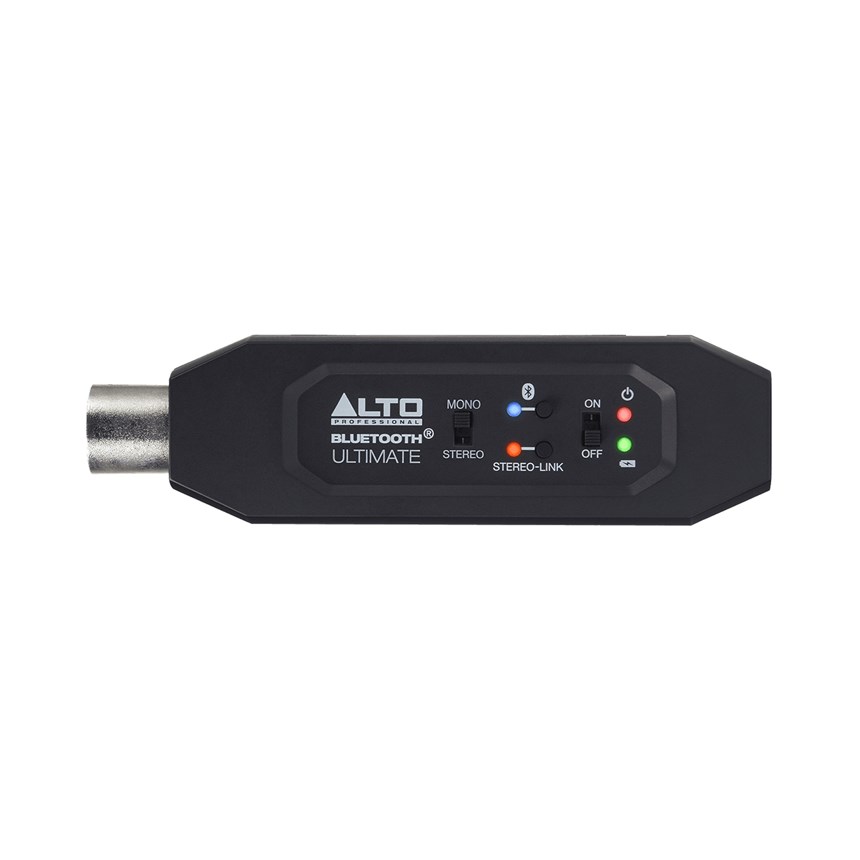STÉRÉO SANS FIL EN UN GESTE. Le Bluetooth Ultimate d’Alto ajoute le streaming audio stéréo à n’importe quelle enceinte ou console via deux sorties XLR. Compact et simple d’usage, il offre 6h d’autonomie, une portée de 30 m et un commutateur mono/stéréo. Appairez, branchez, et profitez d’un son pro sans câble ni compromis.