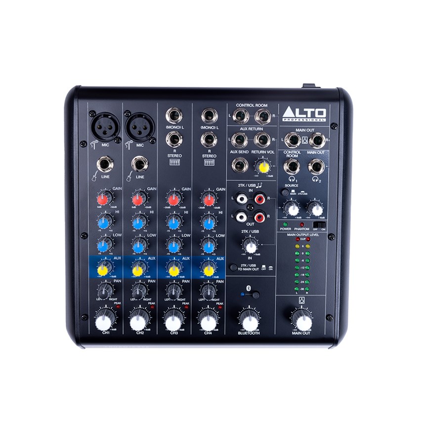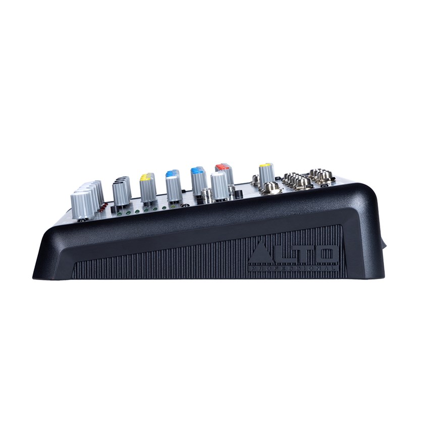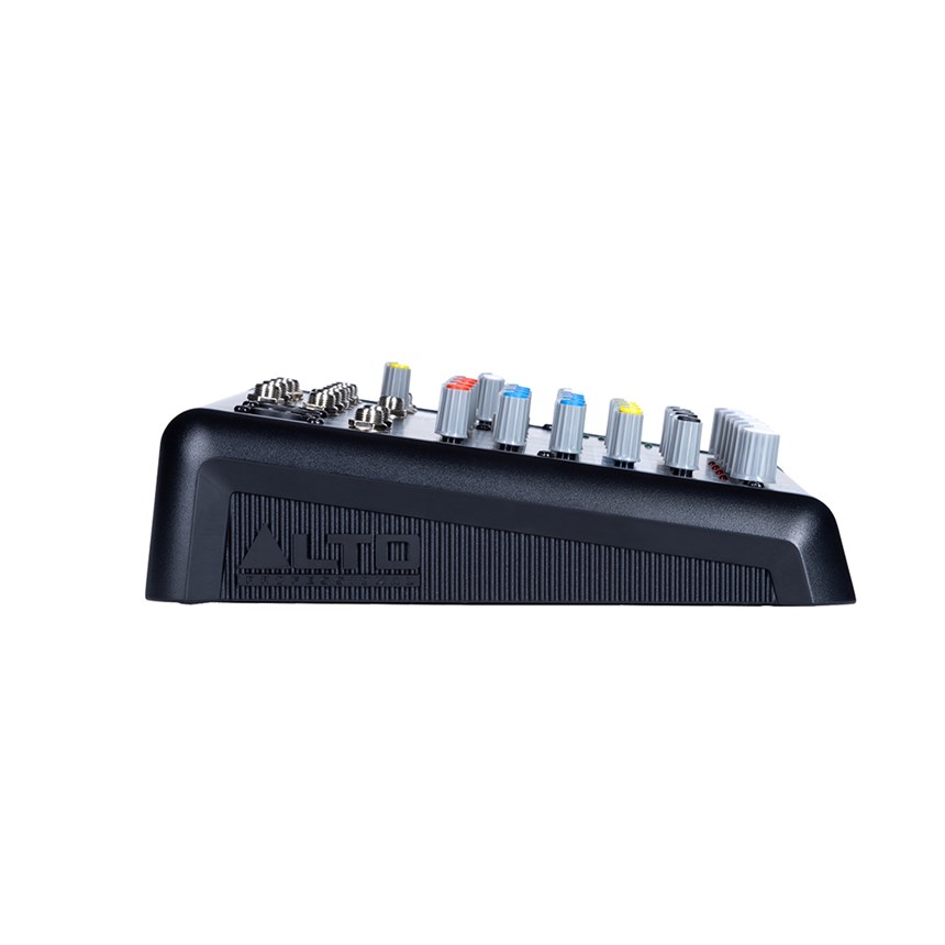- CONTRÔLES SIMPLES ET EFFICACES : Chaque voie dispose d’un gain, d’une EQ 2 bandes, d’un envoi aux, d’un panoramique et d’un volume – avec vumètre LED précis et indicateurs d’état visibles en un coup d’œil.
