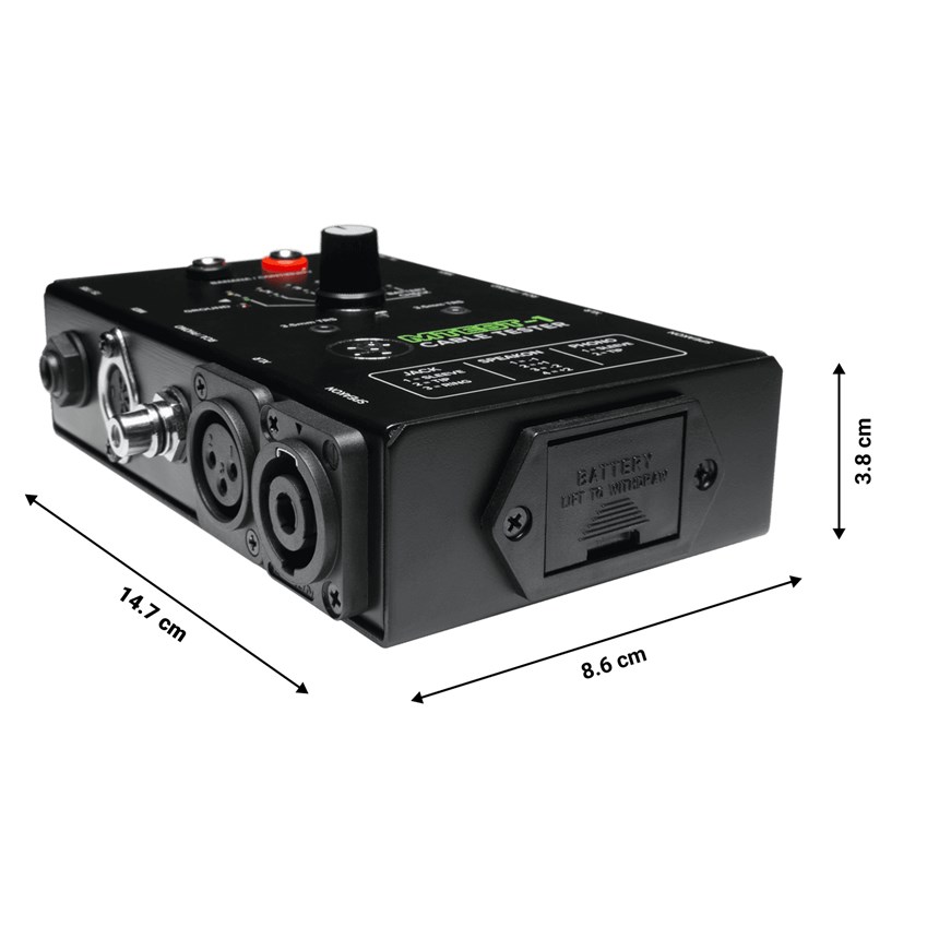 - TEST COMPLET DES CÂBLES : Permet de vérifier rapidement les câbles les plus courants sur scène ou en studio, y compris Jack, XLR, RCA, Speakon, MIDI et Banane.