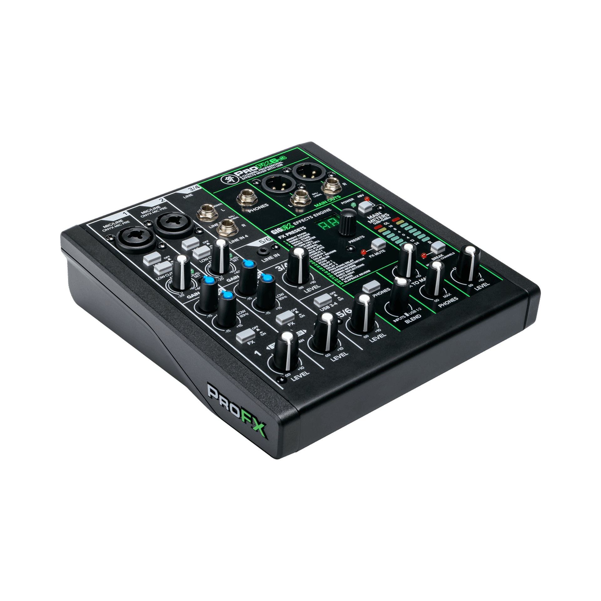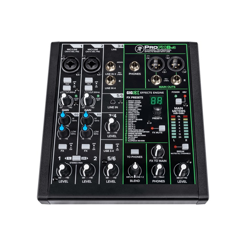 - EFFETS NUMÉRIQUES GIGFX : Profitez de 24 effets intégrés pour enrichir vos mixes avec des réverbérations, delays, chorus et plus encore, sans nécessiter d’équipement externe.