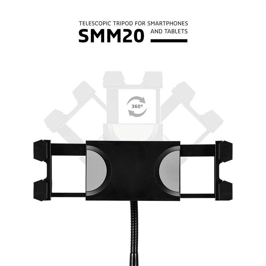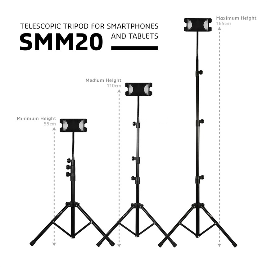 UN SUPPORT ADAPTÉ À TOUS VOS USAGES, MÊME EN MOUVEMENT.Le SMM20 est un trépied réglable et orientable avec bras flexible, parfait pour les conférenciers, musiciens ou créateurs. Stable, polyvalent et facile à transporter, il s’adapte à toutes les situations.