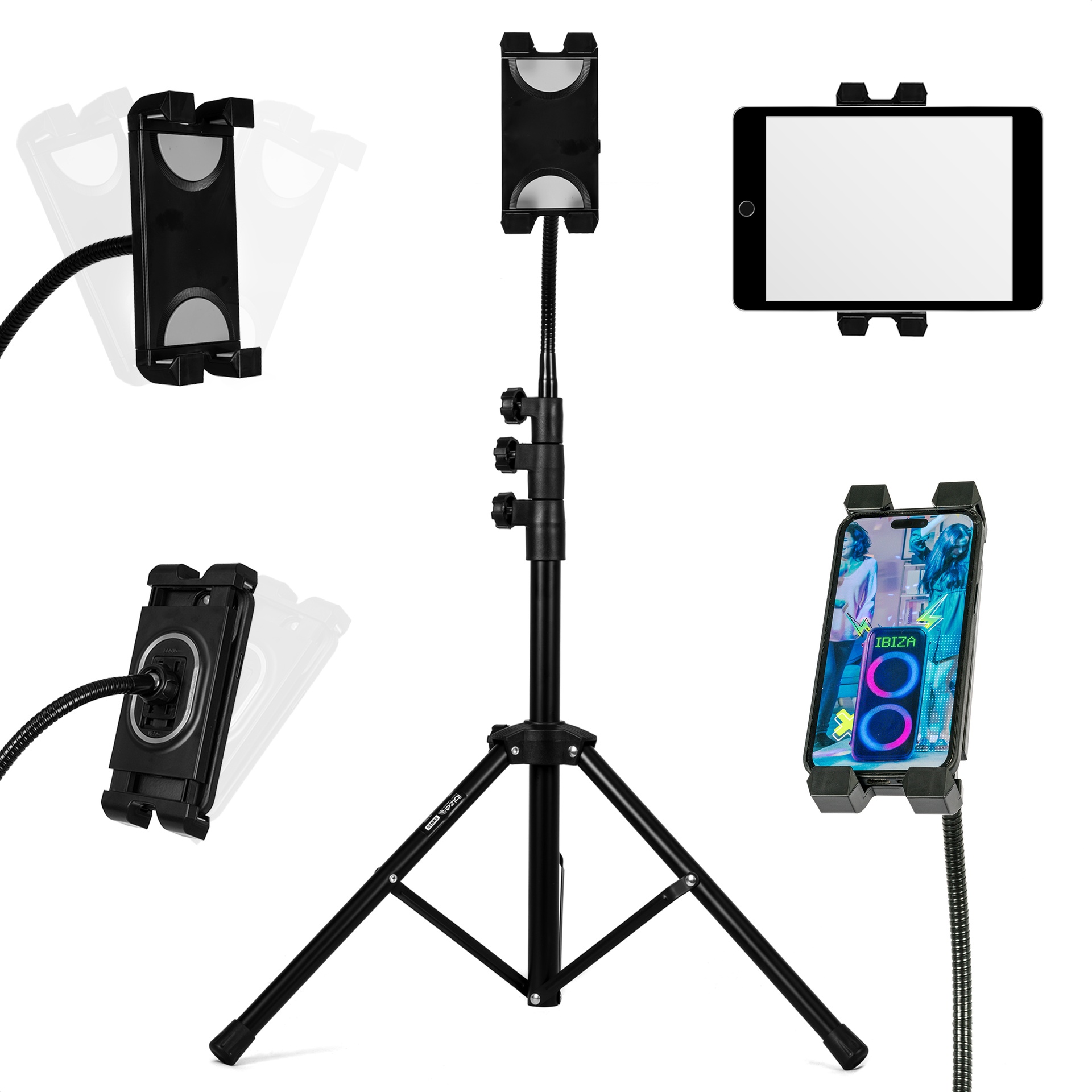 - PROTECTION MAXIMALE: Pince silicone qui évite les rayures et maintient fermement tablette ou téléphone.