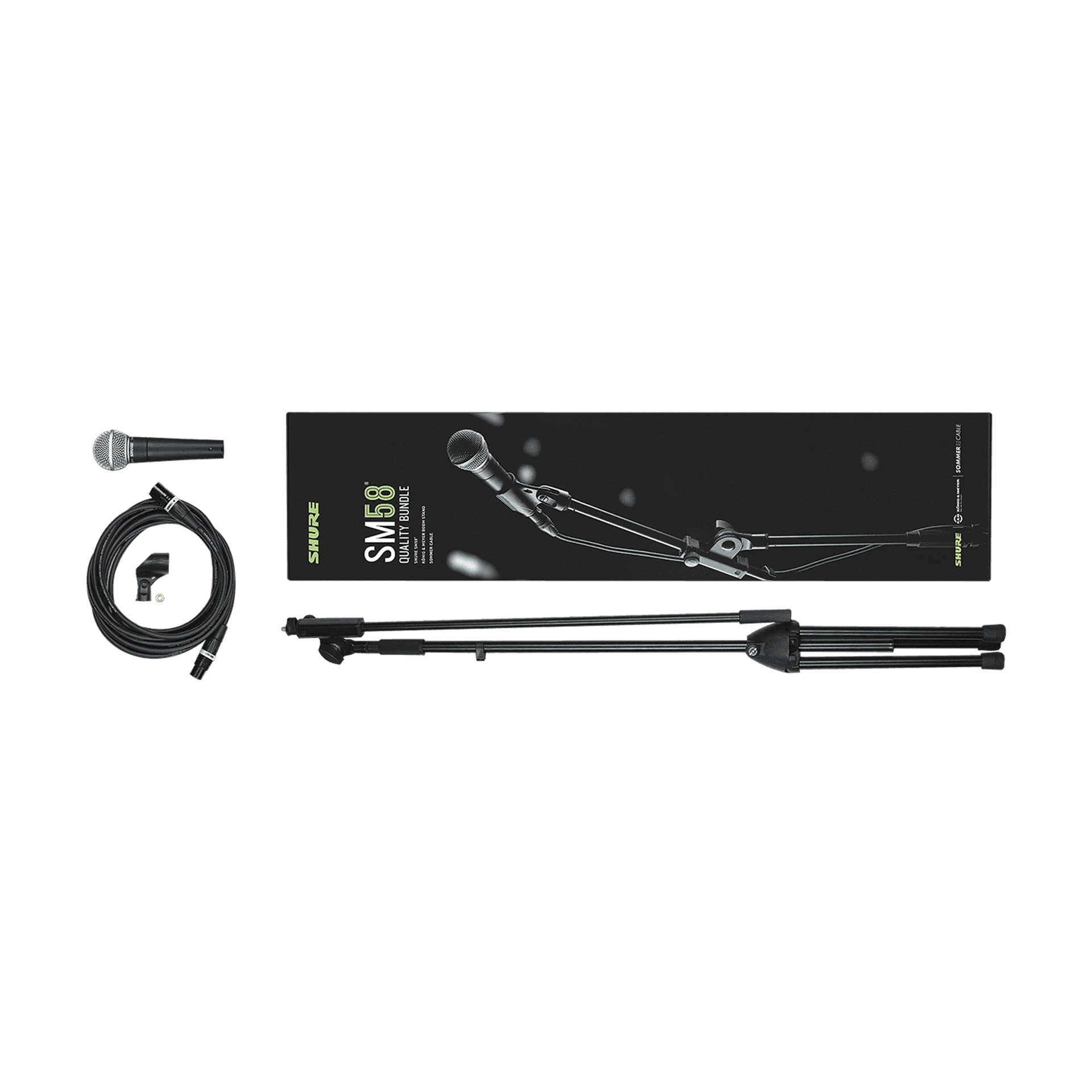 Ce bundle inclut un Shure SM58-LCE, un câble XLR 6 m et un pied perche K&M. Idéal pour la scène, le studio ou la répétition, le SM58 reste la référence incontournable pour les voix.