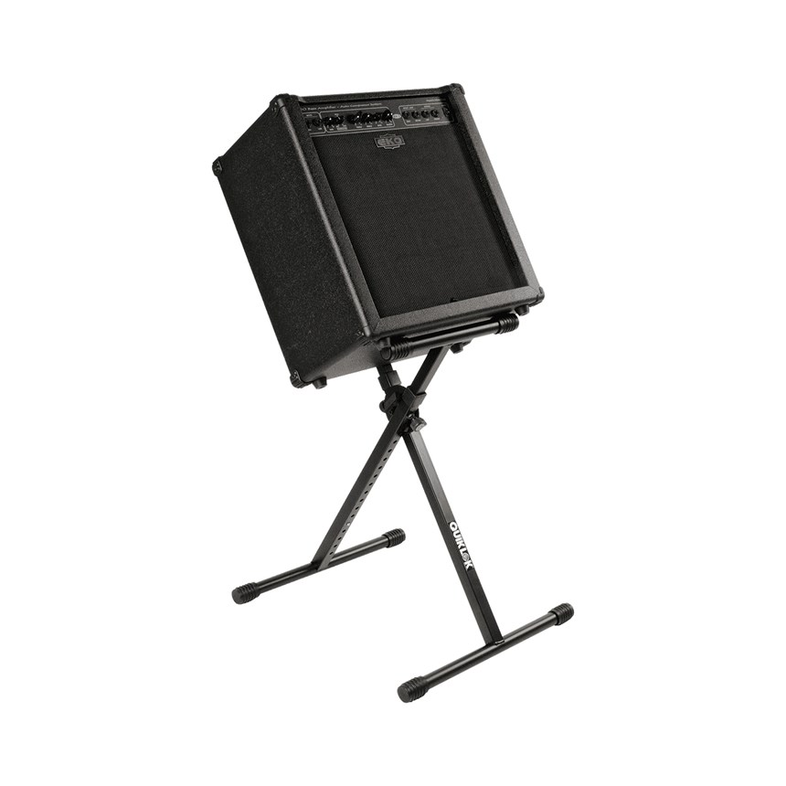 ROBUSTESSE MAXIMALE POUR VOTRE MATÉRIEL AUDIO.Transportez et installez vos amplis, enceintes ou claviers en toute sécurité grâce à ce stand pliable en acier ultra-solide. Sa hauteur ajustable (633 à 1083 mm) et son système à disques dentés offrent une stabilité sans faille. Supporte jusqu’à 81 kg. Adoptez la fiabilité Quik Lok dès aujourd’hui.
